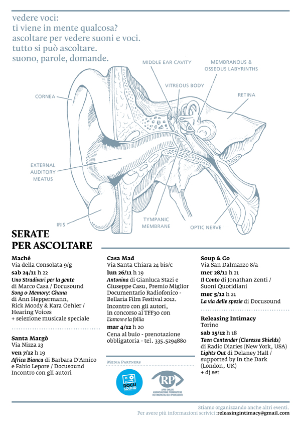 Releasing Intimacy presenta, in collaborazione con Docusound e A.p.r.i., una rassegna di ascolti di audiodocumentari a Torino.